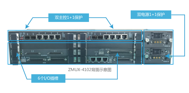ZMUX-4102設備可選全系統冗余,包括雙電源冗余,雙主控板冗余和多鏈路傳輸保護,高安全可靠性。